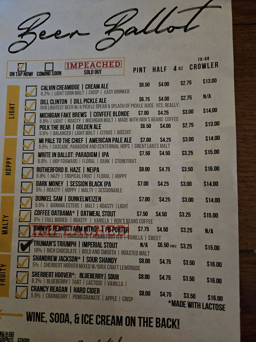 Here's the draft beer list. |